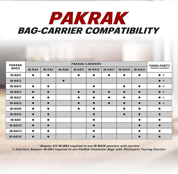 - Allow to use IBERA Trunk bags (IB-BA11, IB-BA14, IB-BA15, IB-BA22) and most universal strap-attached panniers