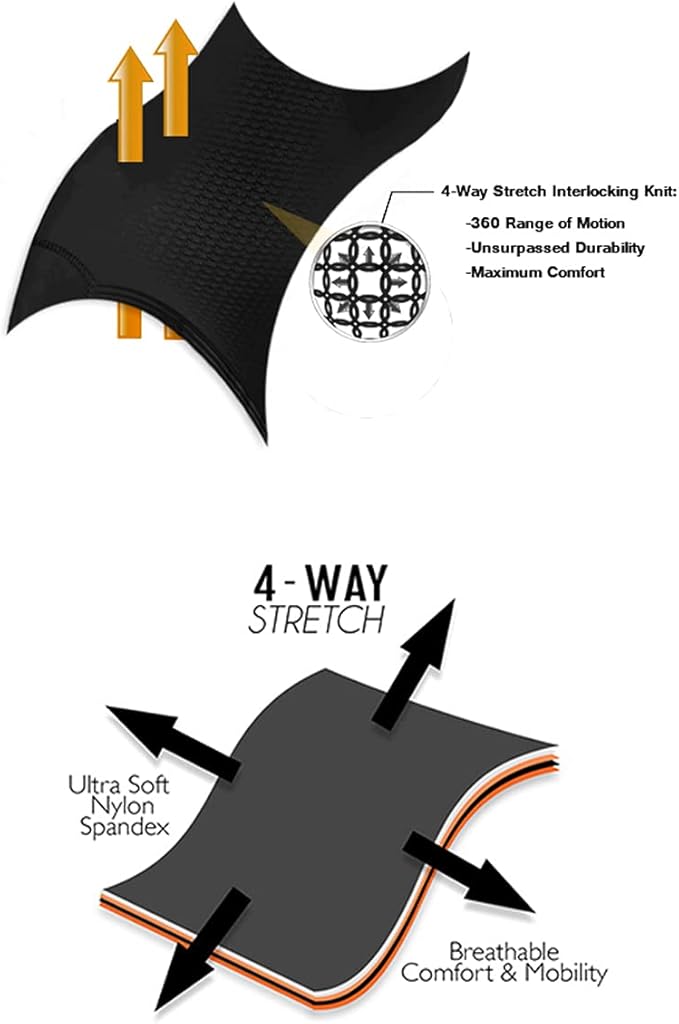 - The 4-Way Stretch within each garment provides great mobility and movement without any restrictive feel. You are able to move freely throughout your day. The compression support through each garment targets certain areas