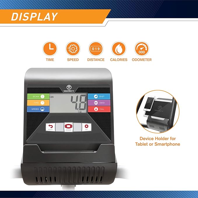 - HIGH-TECH LCD MONITOR – The Marcy Recumbent Exercise Bike has a durable, ultra-functional LCD computer screen that acts as an odometer. The sharp display panel shows time, speed, distance, and calories in extra-large numbers for improved readability.