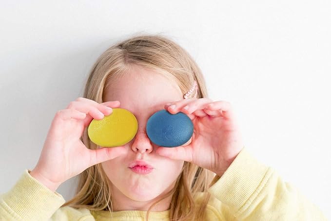 - FRIENDLY DESIGN AND DURABILITY: Egg-shaped for a comfortable fit in your hands. Made of skin-safe thermoplastic rubber (TPR). Three size options - for anyone! Small: 2”x1.3” Medium: 2.5" x 1.75" Large: 3.0" x 2.2". Less messy than Therapy Putty. Easy to clean from dust and dirt.