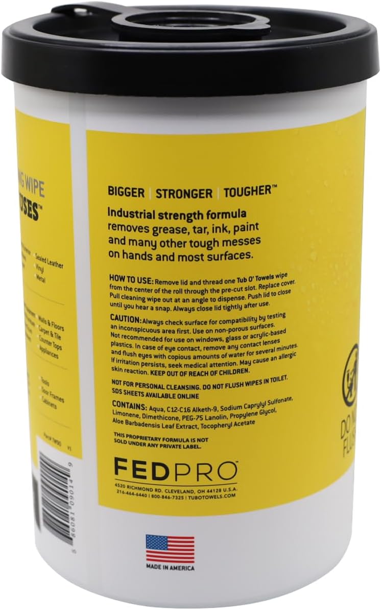 Tub O' Towels Heavy-Duty Multi-Surface Cleaning Wipes, 10" x 12", 90 Count Canister, Removes Grease, Grime, Tough Stains, Durable Disposable Wipes for Home, Garage, Outdoor Cleaning Tasks, 2-Pack