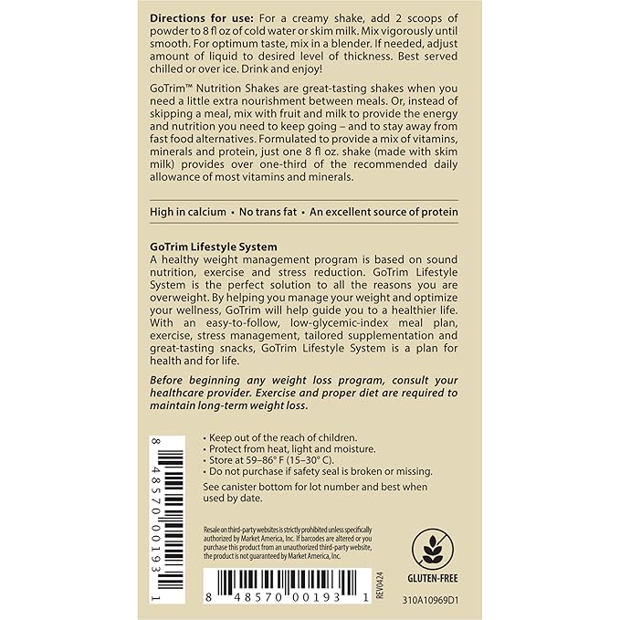 GoTrim Nutrition Shakes - Creamy Vanilla, High Protein, Meal Replacement Shake with 19g Protein & 10g Fiber, Ready to Drink, Gluten-Free, No Added Sugar, 14 Servings