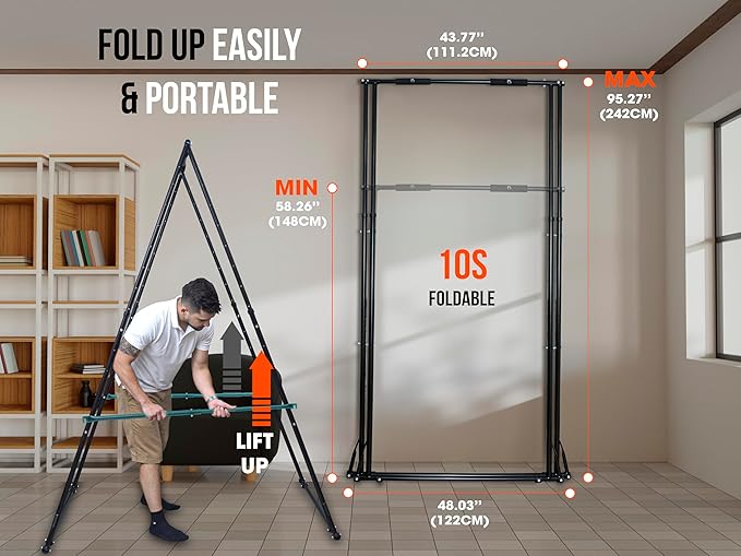 - All-in-One Exercise Solution: Engineered for versatility, the KT folding free standing pull up bar KT1.1518 is ideal for a variety of workouts, including pull-ups, aerial yoga, calisthenics, street workouts, and gymnastics training. Designed to accommodate both children and adults, it is perfect for promoting height growth in kids and teens, while enhancing overall physical health and fitness levels for users of all ages at home, in schools, offices, and beyond