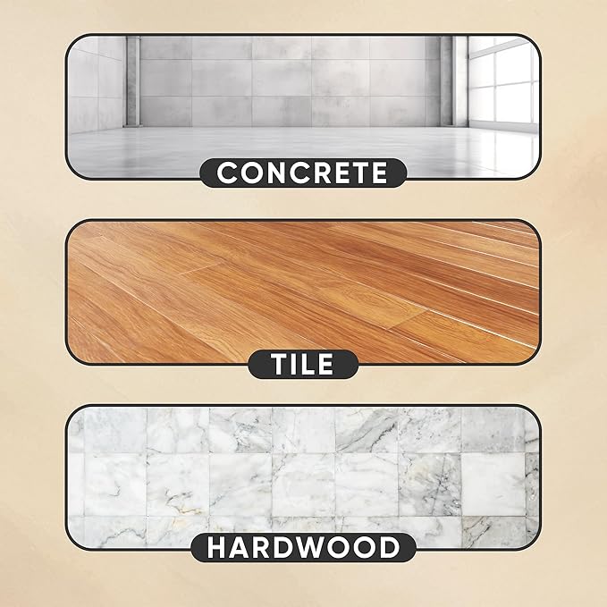 - Extra Thick & Ultra Comfortable – The perfect balance of squishy comfort and stable support. Our 8mm high-density, double thick padding provides plenty of cushion to protect your knees and joints – even on concrete, tile or hardwood floors. Works great in all rooms and flooring including living room carpet, garage or basement.