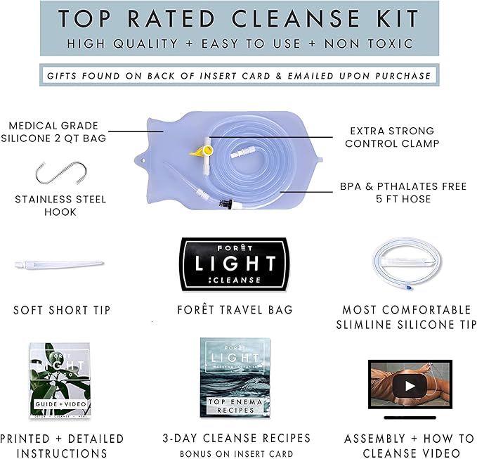 - KIT AS A GIFT: Take pleasure in your 3-Day Detox Foret Light Cleanse and Travel Storage Bag. This also contains other liquid healing recipes for detoxifying at-home enemas, such as aloe and pure water saline solution for organic green coffee (recommended by Gerson Therapy to enhance clean health).