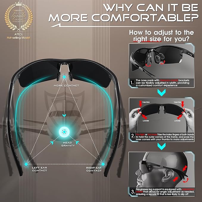 • PREMIUM GIFT PACKAGE: Each pair of ATTCL men’s sunglasses comes with zipper case, microfiber pouch, cleaning cloth, box, and polarization test card. Stylish men’s sunglasses polarized make perfect gifts for Father, Husband, Son, or Boyfriend. These versatile sunglasses men suit driving, fishing, and everyday adventures