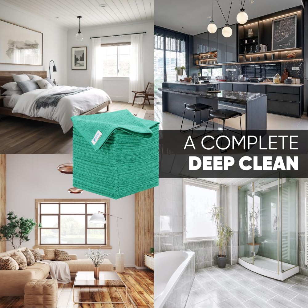 16" x 16" All Purpose Microfiber Towels - 50 Pack - Reusable Wash Cloths, Dust, Kitchen, Car, Shop Rags for Cleaning (Green)