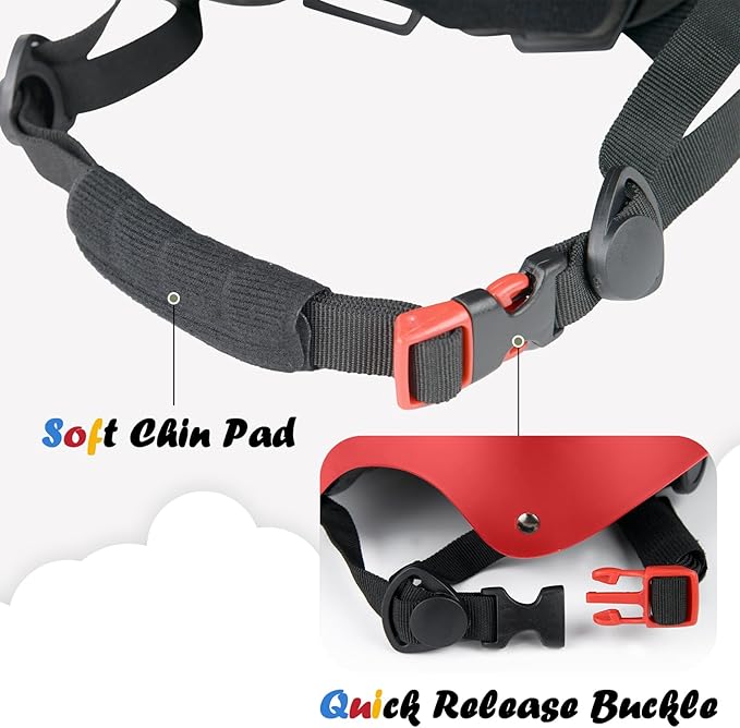 - Fully adjustable, provided by the crank adjustment dial, 2 sets of pads with different thickness, and length-adjustable chin straps
