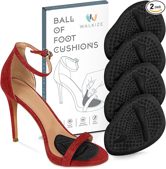 Walkize Metatarsal Pads Women | Heel Inserts for Women | Ball of Foot Cushions (2 Pairs Foot Pads) All Day Pain Relief and Comfort One Size Fits Shoe Inserts (Black)