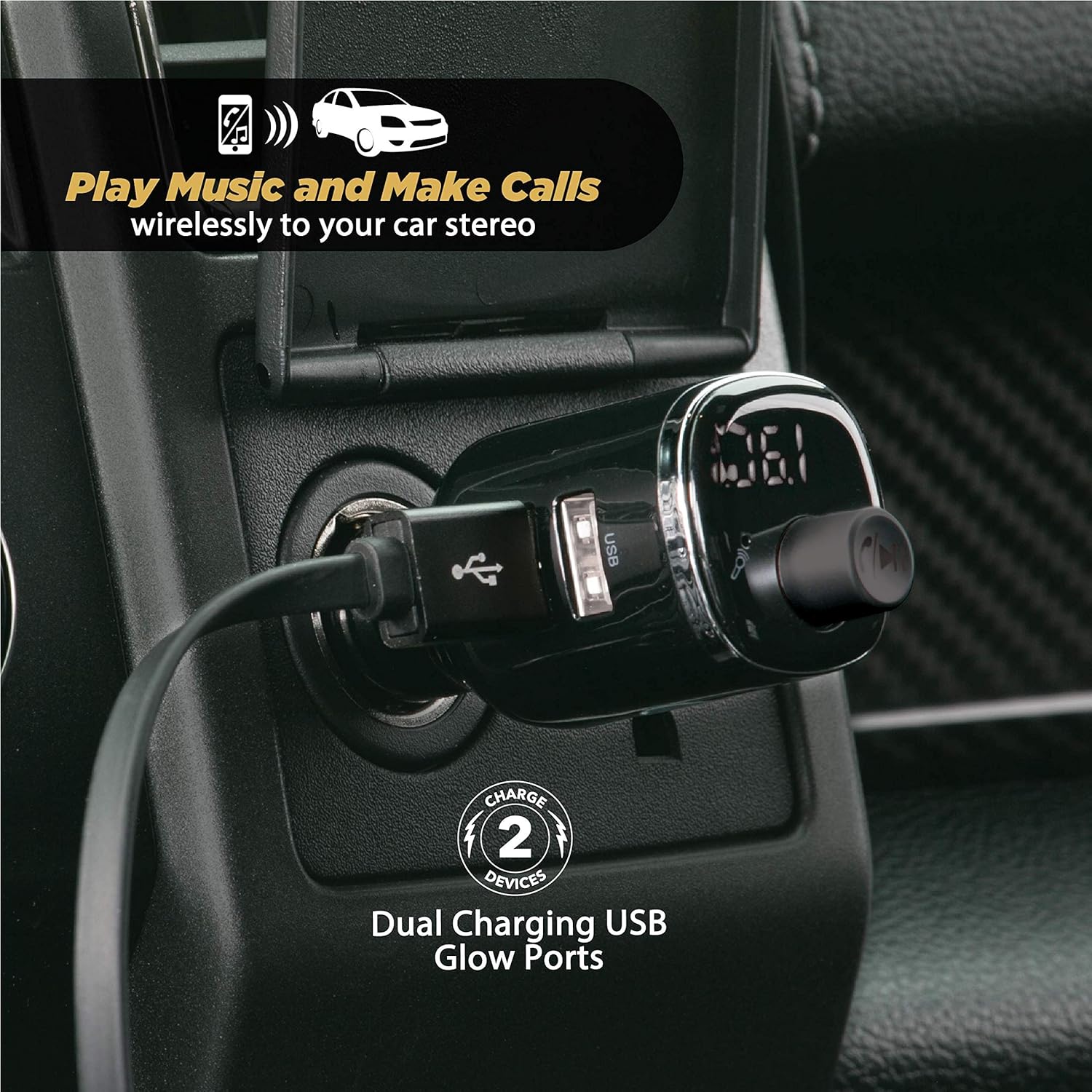 - BLUETOOTH CAR KIT: Make hands-free calls from your bluetooth enabled smartphone