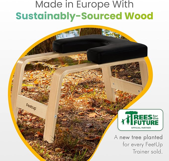 - Made with Earth-Friendly Materials - FeetUp’s headstand inversion bench won’t just benefit you. It’s good for the environment, too. These yoga inversion chairs are composed of sustainable vegan leather and dark or light beech wood.
