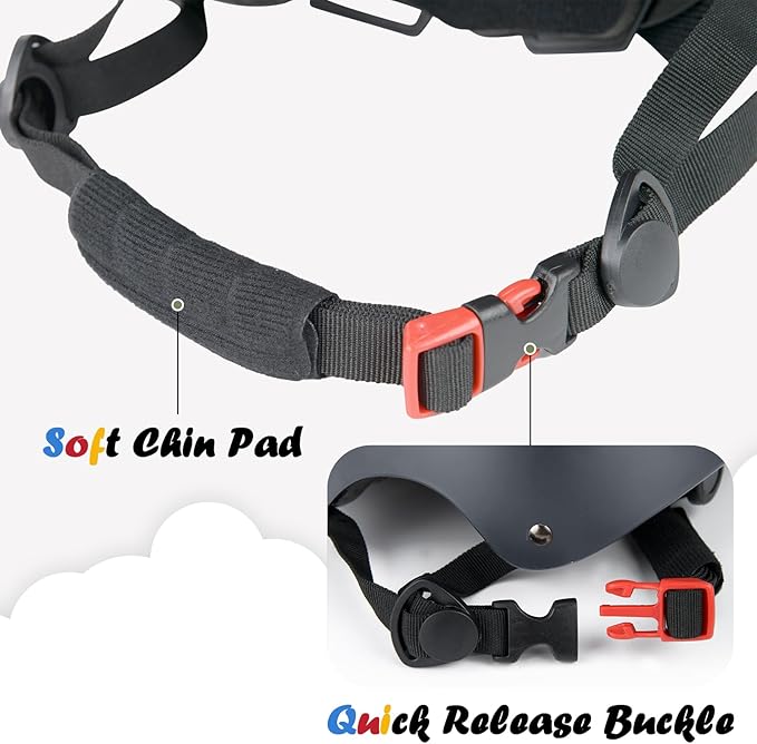 - Fully adjustable, provided by the crank adjustment dial, 2 sets of pads with different thickness, and length-adjustable chin straps