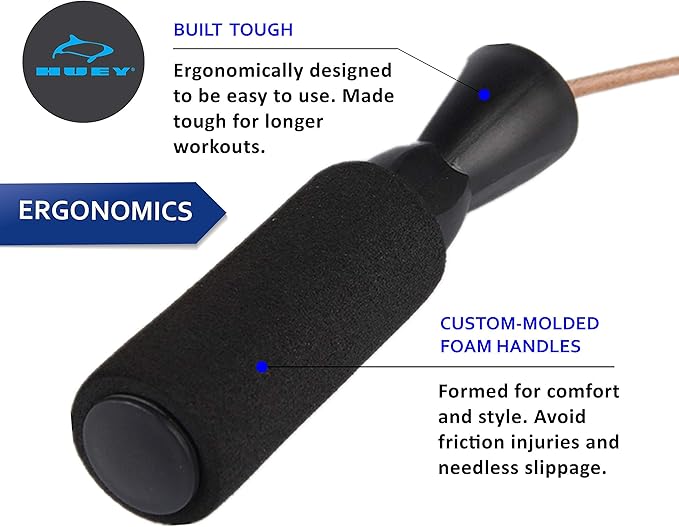 - ✅ BUILD TO LAST - Made from 100% GENUINE LEATHER, the HUEY Sport skipping rope is built to withstand HEAVY-DUTY use. Custom molded foam grips come with super-speed ball bearings that ensures smooth, effortless and even rotation.