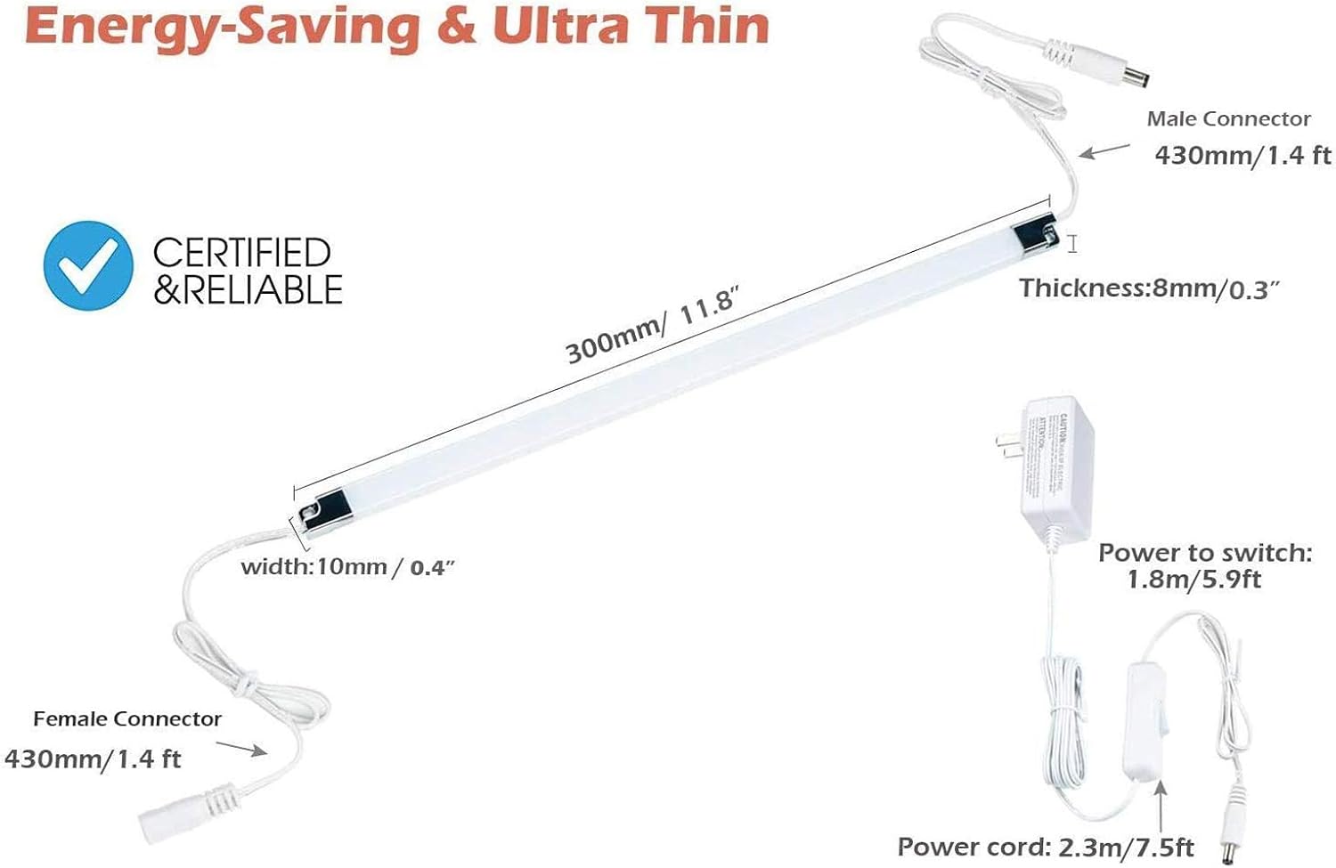 Led Light Strips Kit, (6) 12’’ Linkable Light Bars + Rocker Switch + UL Power Adapter, Under Cabinet Lighting for Locker Closet Shelf, Showcase Lighting, 6000K Cool White