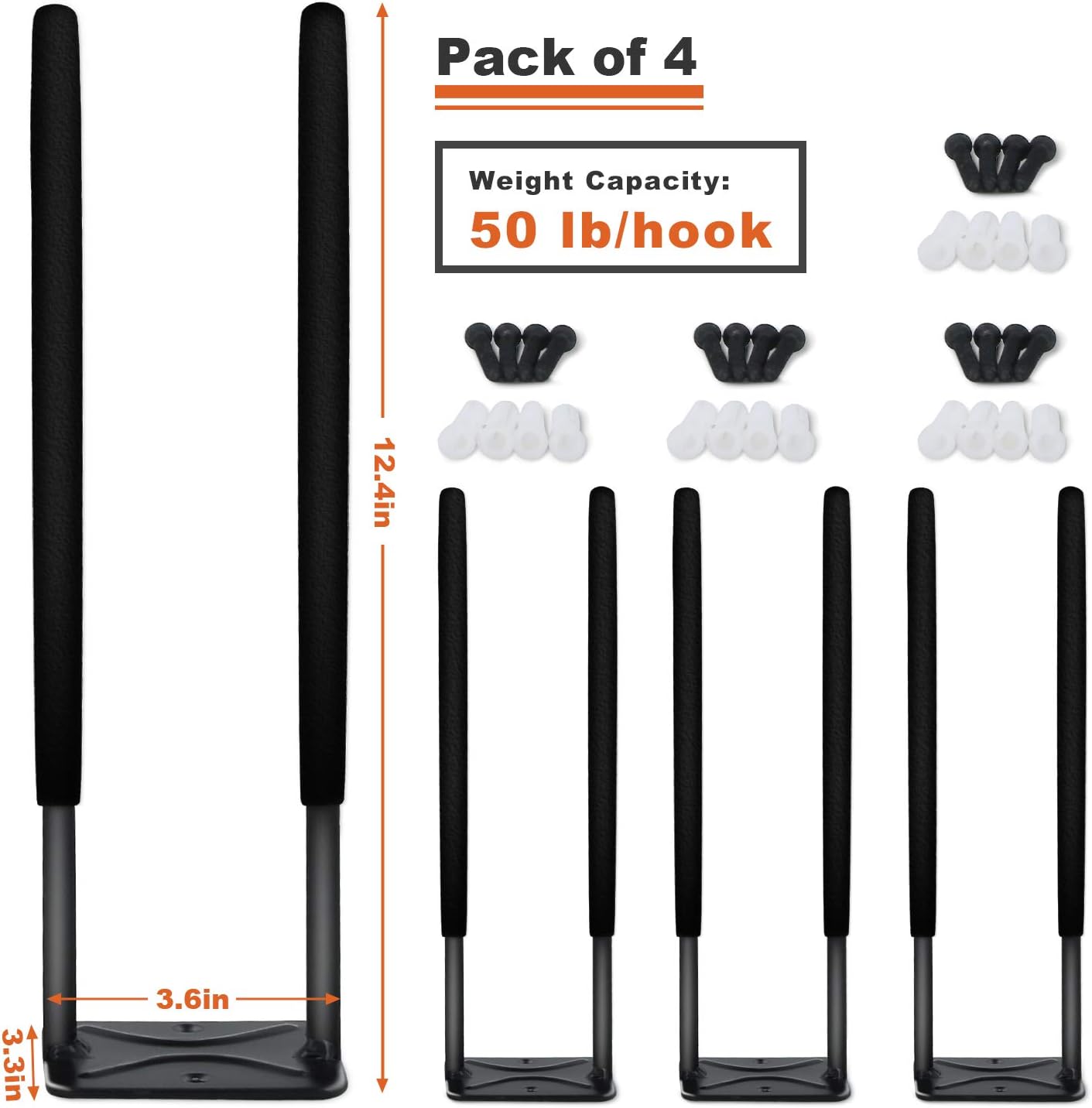 Heavy Duty Garage Tires Hooks Wall Mounted Hanger Tool Organizer Rack Hardware Steel Metal Multi-Tools Storage Utility Hooks with Screws and Anchors(4, Black)