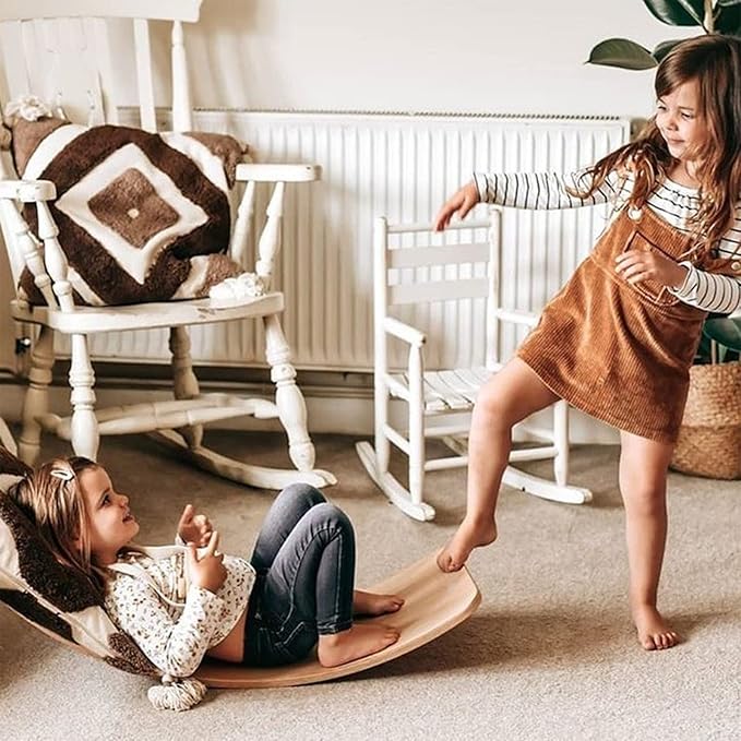 - 🌱 UNLIMITED WAYS TO PLAY: The Wooden Balance Board is whatever you imagine it to be - a swing, a bridge, a shop, a cabin, a stepping stone, a racetrack, a lounge chair, fitness equipment, a puppet, a small football goal, a teeter popper or a tunnel.