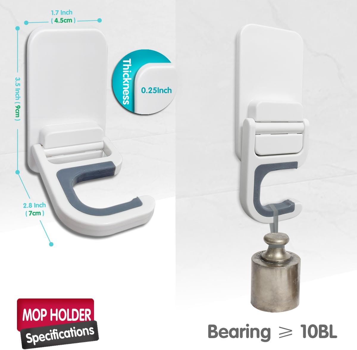 - Waterproof & Multi-Surface Compatible: Constructed from durable ABS plastic, this mop holder wall mount resists water and rust, making it ideal for humid environments. Works perfectly on various surfaces including ceramic tile, wood, metal, and glass.