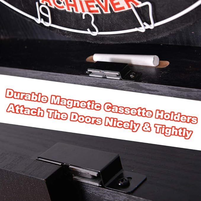 - HIGH-CLASS MULTIFUNCTIONAL CABINET- Incorporating dart holders, scoreboards and pen holder, the solid wooden cabinet defend your wall in a large area. It is also highlighted by strong corner protection and hanging hooks. Open dimensions: 21.65” (55cm) H x 39.57" (100.5cm) L x3.35"(8.5cm) D; Closed dimensions: 21.65” (55cm) H x 19.68" (50cm)L x3.35"(8.5cm) D.