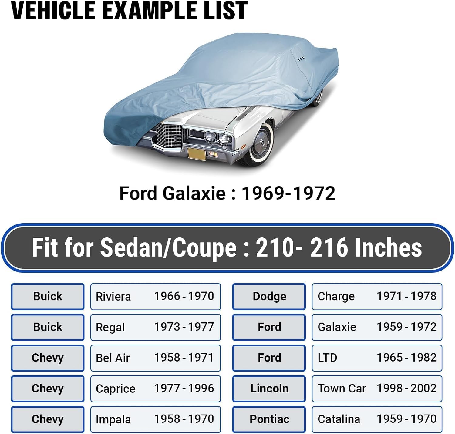 iCarCover 18-Layer Car Cover Waterproof All Weather, Premium Quality Car Covers for Automobiles, UV Protection, El Camino, Impala, Bel Air, Monte Carlo, Galaxie, Charger, Fits 210-216 Inches