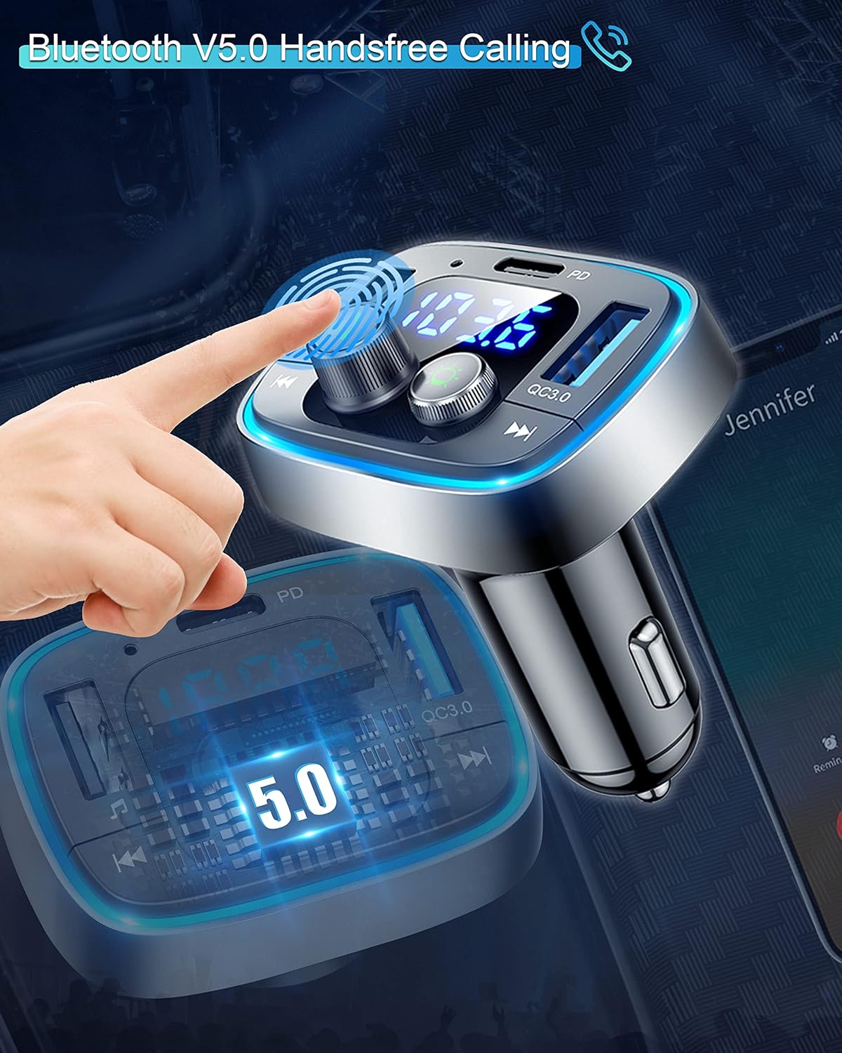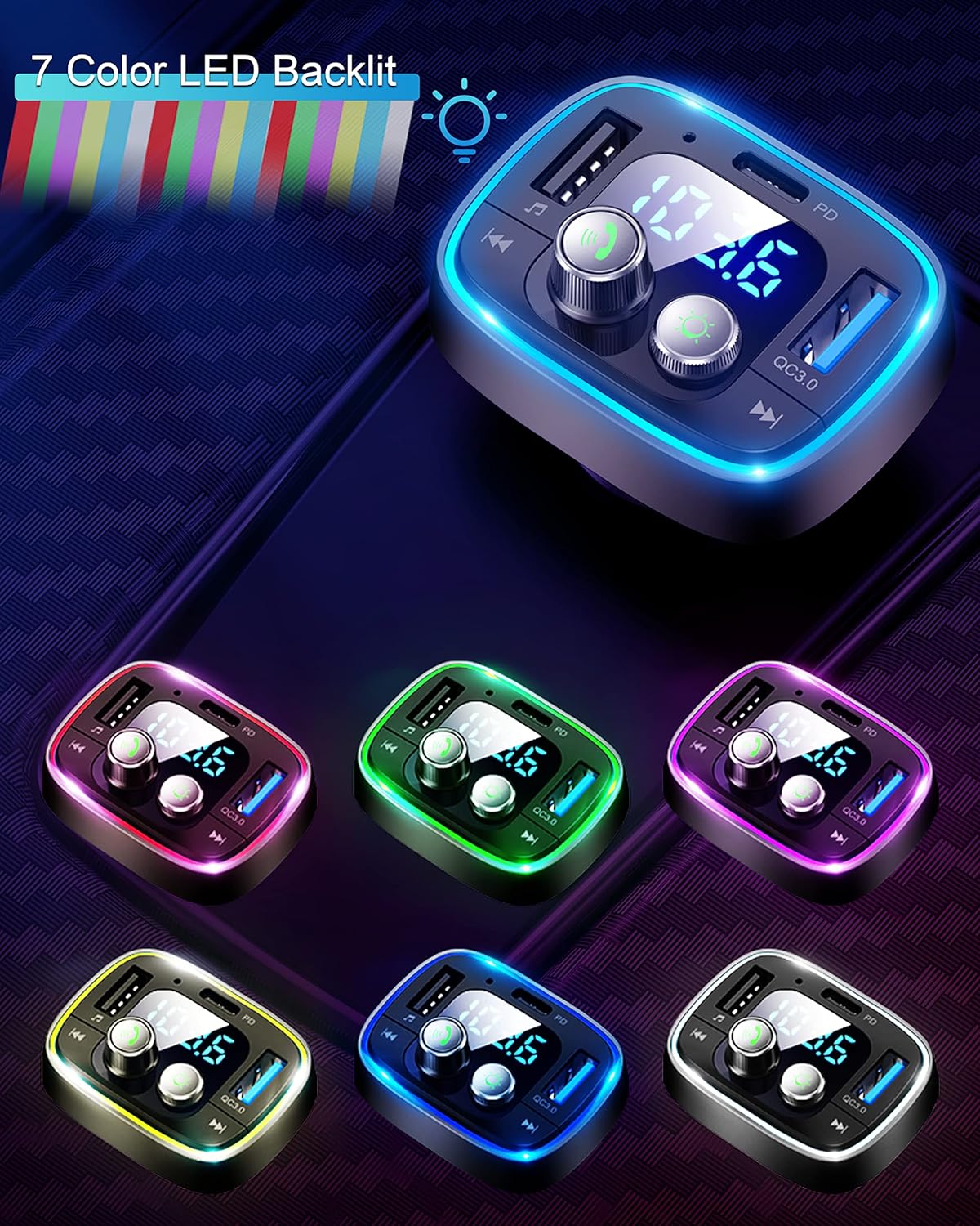 - Special Feature : Bluetooth Car Adapter, FM Transmitter, Hands-Free Calls, Music Adapter & Player, PD+QC Fast Charging & 7-LED Breathing Backlit Bluetooth Car Adapter, FM Transmitter, Hands-Free Calls, Music Adapter & Player, PD+QC Fast Charging & 7-LED Breathing Backlit