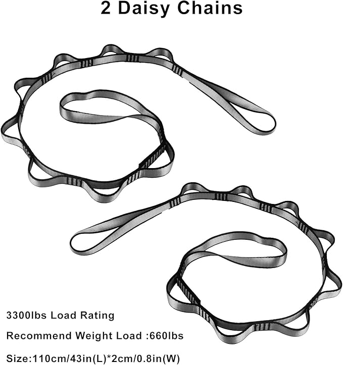 - There are many Aerial Yoga Hammocks on the market, but our Basic Aerial Yoga Hammock is made from Certified Quality Material And Hardware. 1 x 5.5 yards Elastic aerial hammock , 2 x Steel Screw-lock Carabiners (25KN), 2 x 3ft Nylon Reinforced Daisy Chains (23KN).Max rated for 2,000 pound dynamic load. The Daisy Chains and carabiners are certified to climbing standards.