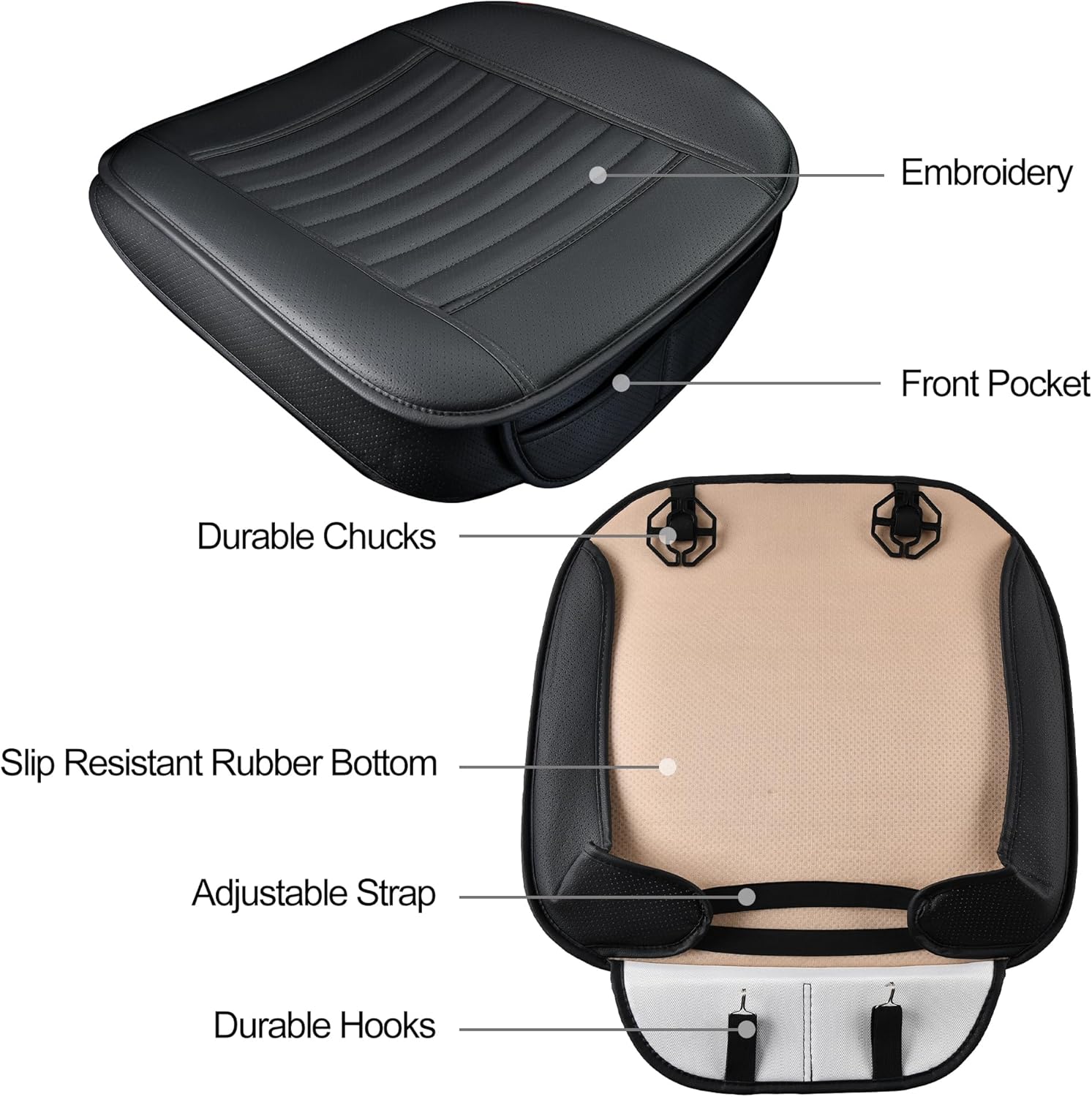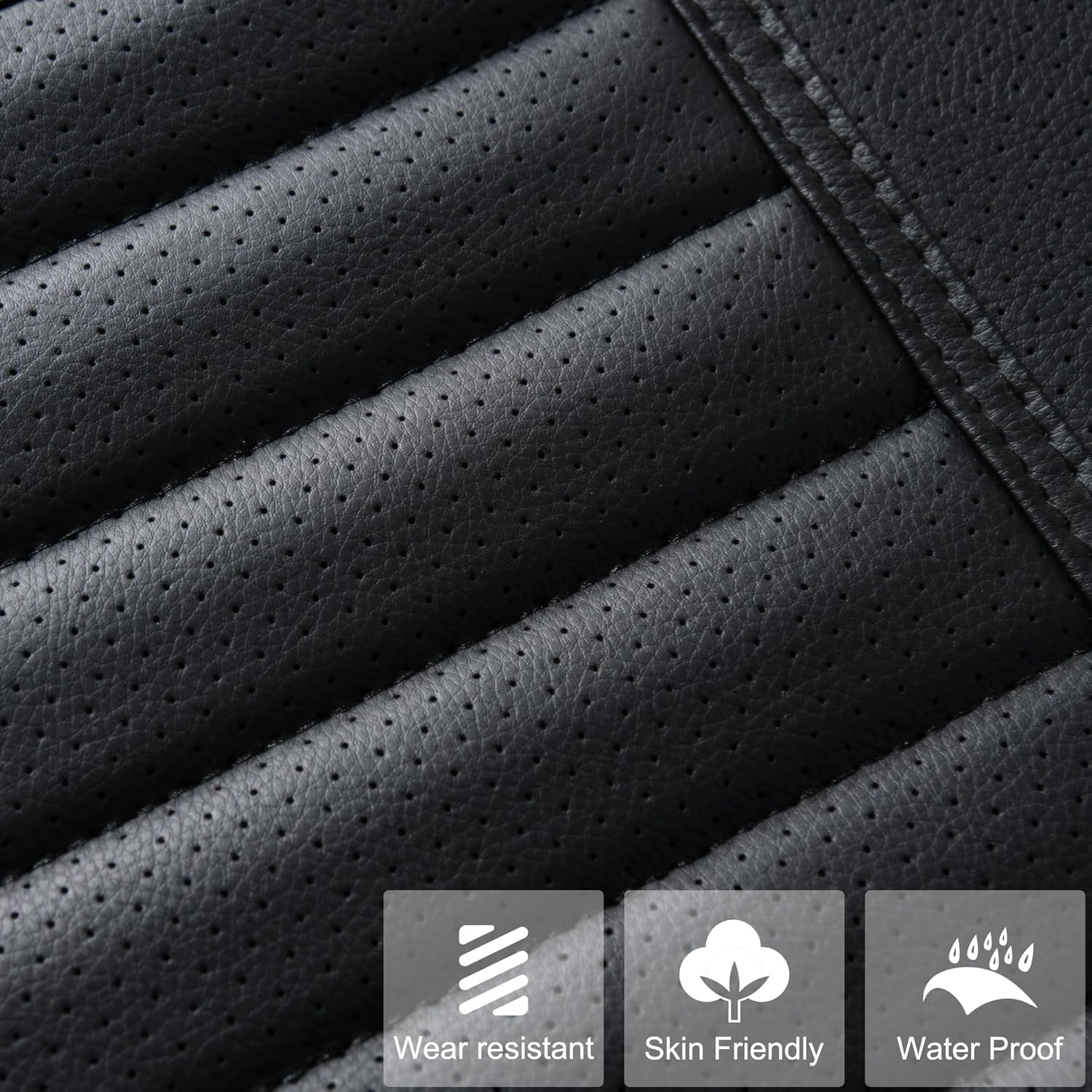 - ✅Premium PU Leather Material-The auto seat cover is made of high-grade soft PU leather, waterproof, easy to scrub, wear-resistant and good breathability. Built-in a layer of highly flexible sponge, four seasons applicable. Maintain the comfort of the buttocks, helps relieve pressure on hips and thighs from driving for a long time. At the bottom of cushion is rubber sole which prevent falling off from your car driver seat.