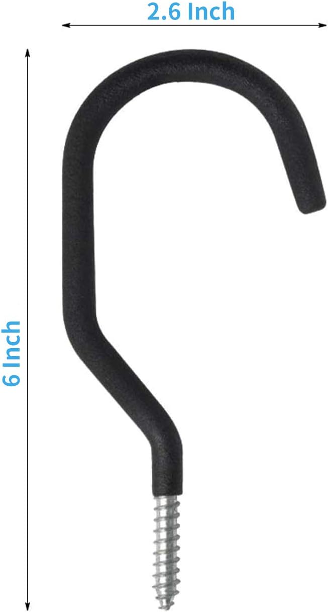 SMARTOLOGY 8 Pack Bike Hanger Storage Hook Rack, Rubber Coated Heavy Duty Large Screw in Ceiling Hooks for Garage Wall and Ceiling Bicycle Storage, Utility Tool Hanger (Black)