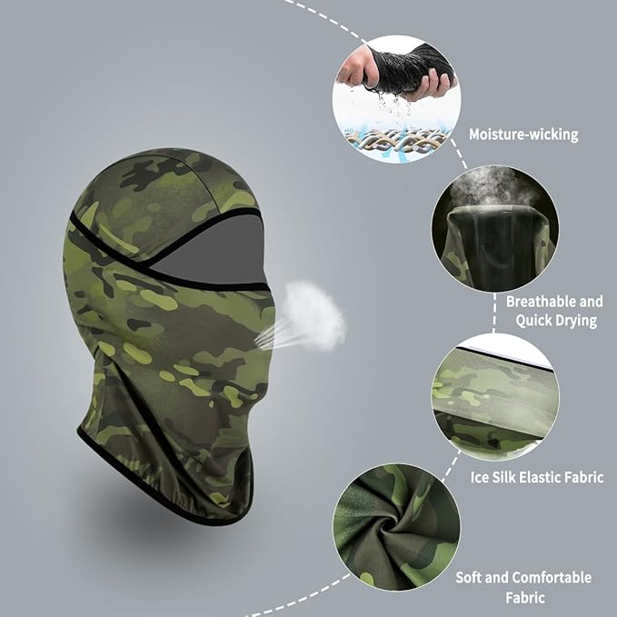 • ?�Ultimate Protection for Your Face?‘Very effective for providing face protection, primarily against the wind, sun UV protection, summer cooling, dust and sand control while motorcycling or other sports. Achiou balaclava face mask men is made from high-quality ice silk fabric, comfortable and lightweight