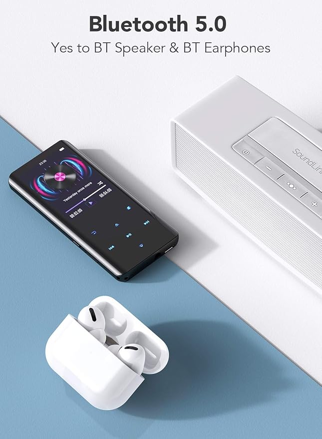- 【Wireless Bluetooth 5.3 】AGPTEK MP3 player adopts upgraded Bluetooth 5.3 has better compatibility, stable signal and reduces the power consumption of the music player. You can pair the Bluetooth MP3 Player with your Bluetooth wireless headphones or car bluetooth speaker.【Tips: Unable to directly connect to cellphone and car via Bluetooth】