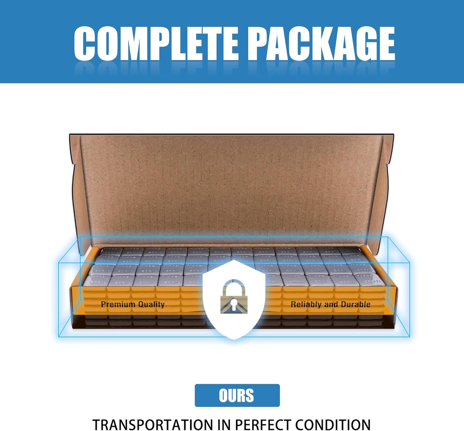 - High quality for durability: The balance are treated with a galvanized coating to prevent corrosion and rust, and can withstand any weather conditions your car normally experiences. Meanwhile, our wheel weights feature rounded corner stamping to easily contouring any wheel shape and size
