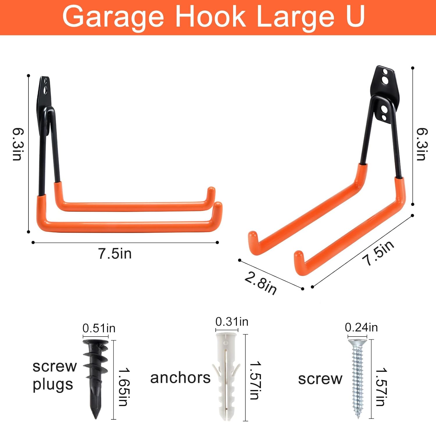 - Multiple Organizing Solutions: Garage Hooks U(Large,Medium,Small), Garage Hooks J(Large,Small), Mop Broom Holder Organizer S. We have a variety of sizes and styles of garage hooks, which can be freely combined to meet all your needs.