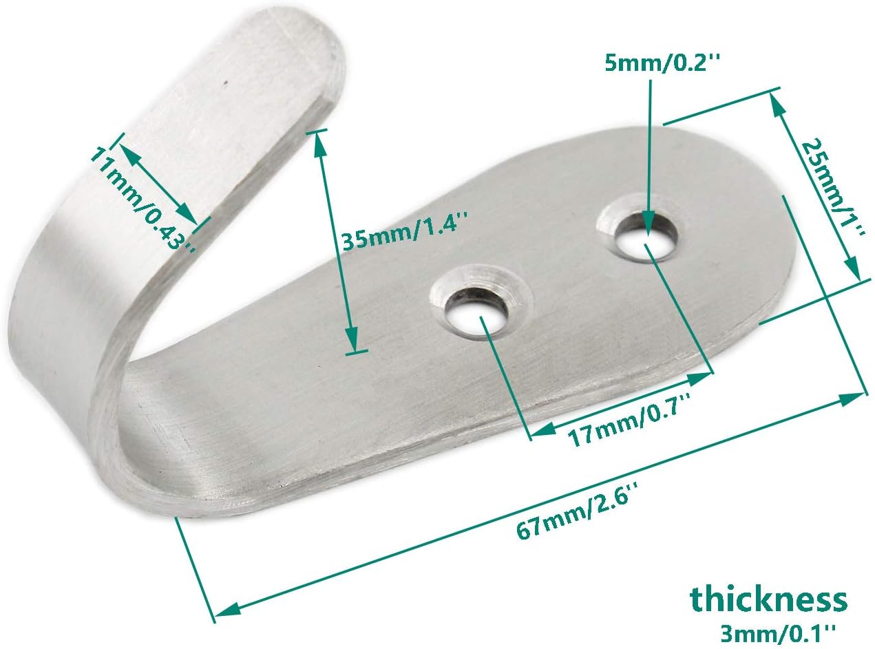 - These hanging hooks are made of stainless steel 304 ,thick 3mm/0.12inch, Package includes 8 hooks with 16 screws,16 caps,16 anchors.