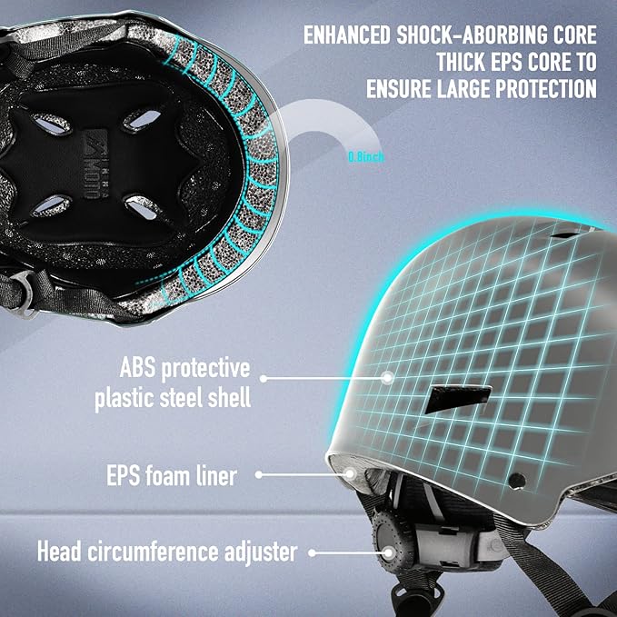 - ☞1:CERTIFIED SAFETY: Passed CPSC 1203 & ASTM 1492.INNAMOTO Skateboard Helmet/Bike helmet has undergone intensive safety tests.Our Scooter Helmet fully formed ABS outer shell resists impact and high density EPS inner shell provides thickened shock to keep you safe.