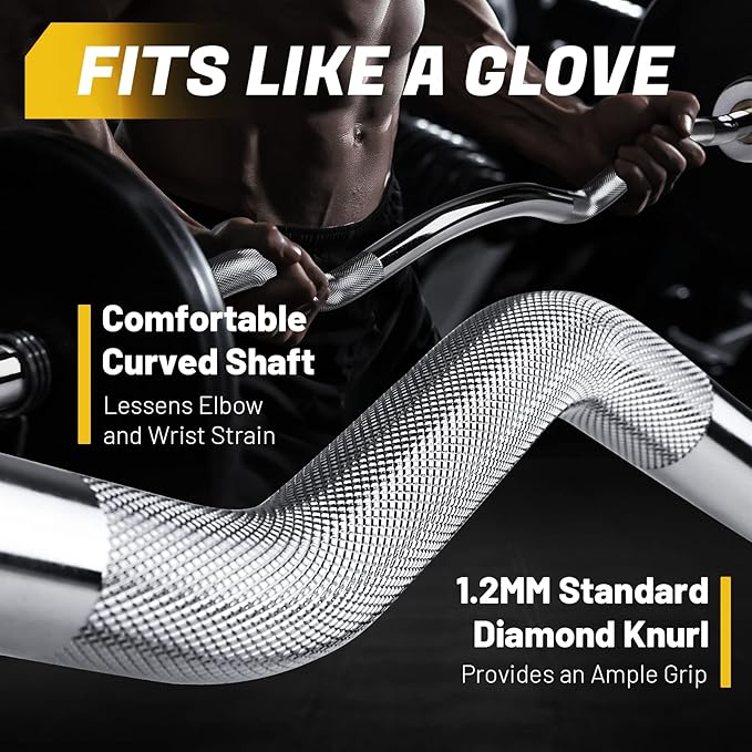 - Enhanced Grip: Our LIONSCOOL EZ Curl Bar features a 1.2mm standard diamond knurl. It strikes the perfect balance between ample grip and comfort. The bar has two sections of knurling totaling 15 inches, both are fully covered through the curves. You’ll enjoy a secure grip for various exercises from curls to rows.