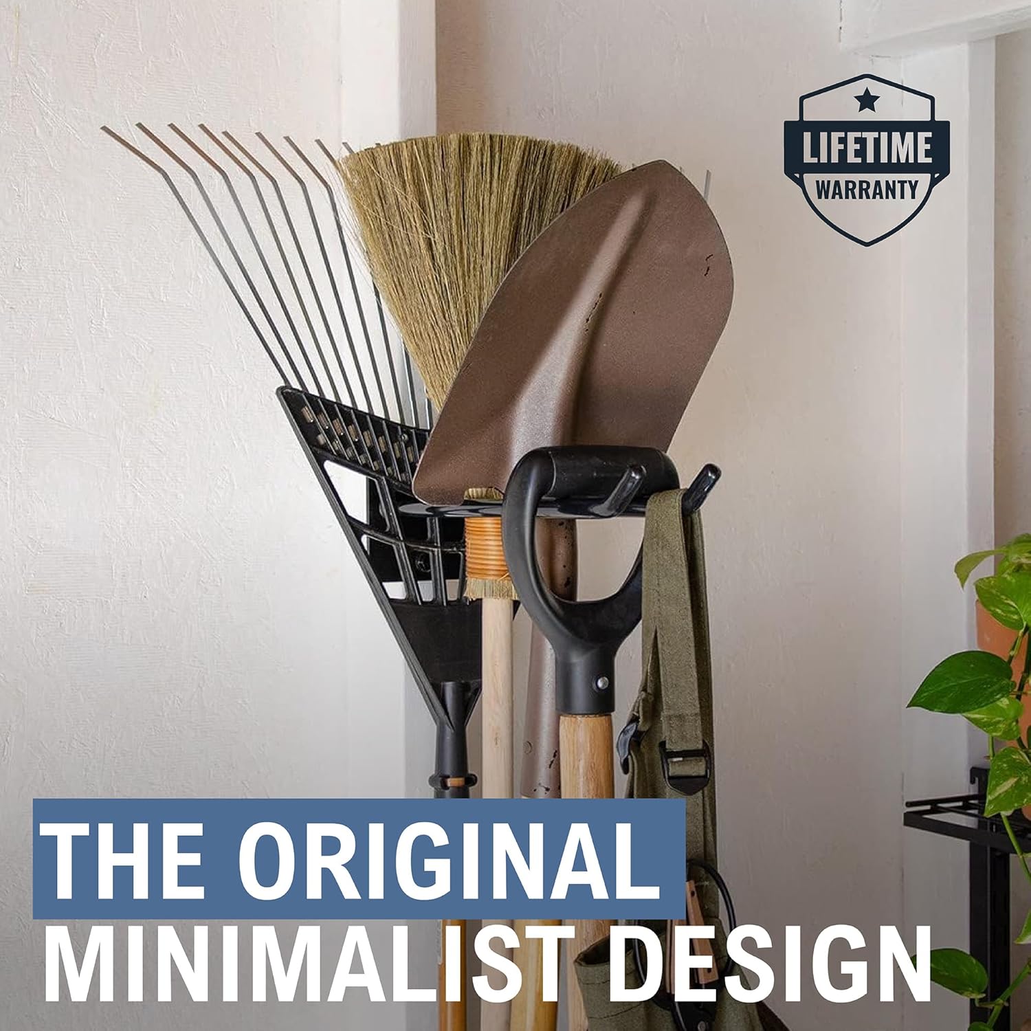 - Pro Garage Organization – The ultimate tool storage organizer for shovels, rakes, brooms, mops, power equipment, extension cords, garden hoses, and much more. Each rack measures 12" x 4" x 4.5".