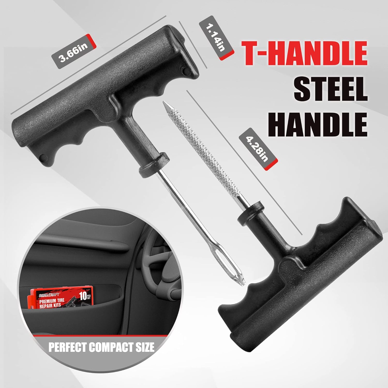 Economical Tire Repair Kit to Fix Punctures and Plug Flats, 10-Piece Value Pack, Ideal for Cars, Trucks, Motorcycles, ATV, with Storage case