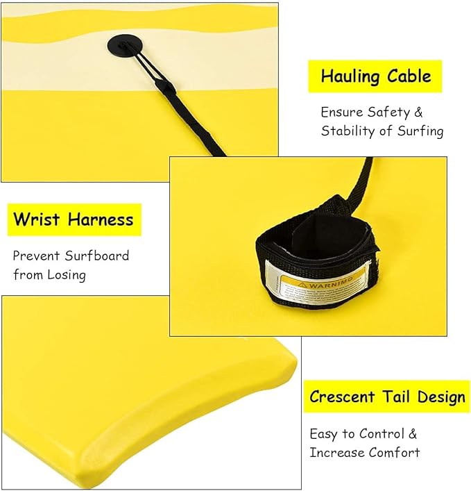 • 【Strong Buoyancy & Light Weight】Strong buoyancy and sturdy construction give our body board a strong load-bearing capacity. It is not easily deformed and faded and can be used for a long time. The light weight makes it easy to carry, so you can take it wherever you go.