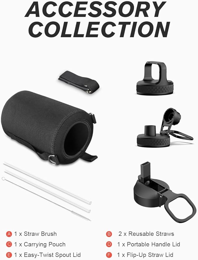 - Flexible Drinking On-the-Go: This half gallon water jug comes with 3 different lids. The screw-on lid with flip-up handle is for easy ice refilling with superior portability; spout lid makes it convenient to drink hot liquid and straw lid for sipping cold.