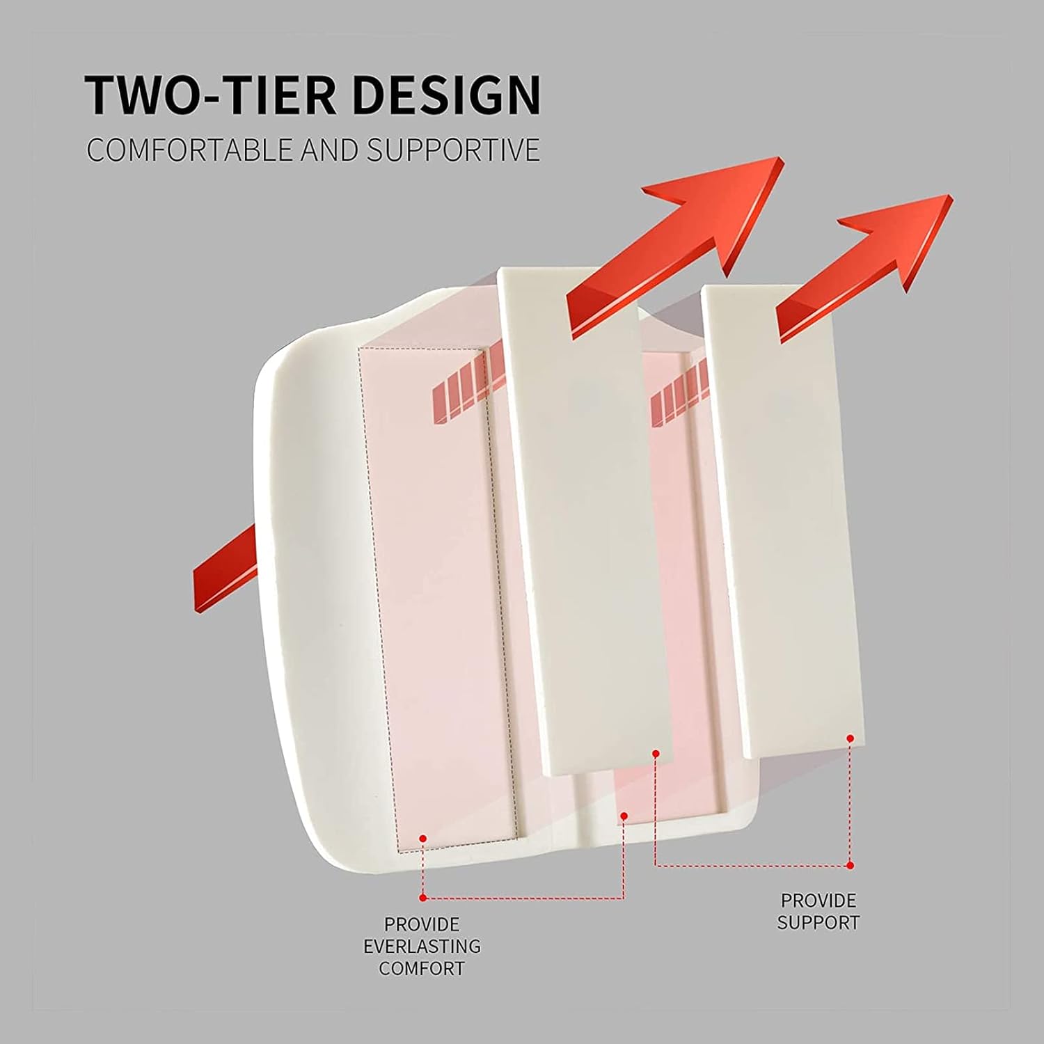 - ERGONOMIC DESIGN WEDGE CUSHION:Ergonomically designed seat cushion provides maximum back support and comfort while pressure relief on the hip/coccyx/tailbone and promotes healthy posture. It's great for driving because most car seats slope downwards in the back, causing lower back pain.the height of the wedge is perfect to level out and balance the angle of my pelvis to my knees,it lifts your pelvis higher than your thighs, which helps naturally align your back and provide comfort.
