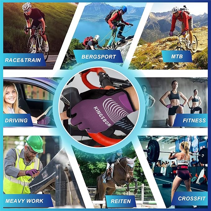 KINGSBOM Breathable Cycling Gloves, Shock-Absorbing Bike Gloves with Light Silicone Gel Pad, Anti-Slip Bicycle Gloves for Men and Women