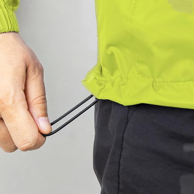 • ?�Unique Design?‘Lightweight lite rain jacket elastic cuffs prevent the rain drops to the cuffs; Adjustable drawcord hood to prevent yourself from being wet; The hem contains elastic rope for warmth and keep you dry. Suitable for casual wear, outdoor sports, outdoor work, traveling, cycling, hiking, climbing, fishing, camping, hunting.