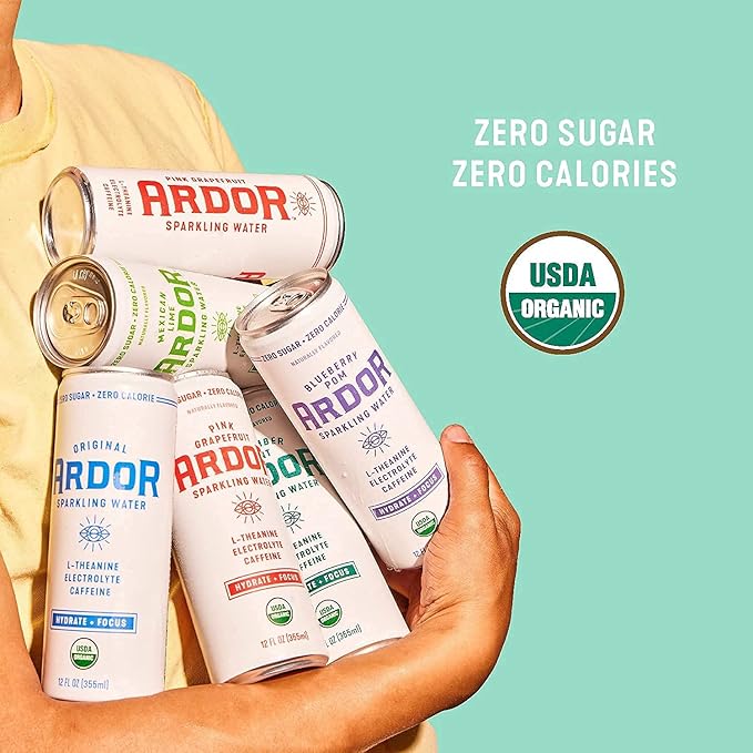 - Just 5 Clean Ingredients – Zero sugar, zero calories: A clean, refreshing sparkling plant-powered energy boost without sugar or calories. Ardor Energy Sparkling Water is crisp, light and refreshing. No artificial flavors, dyes or sweeteners. Ardor Energy is made without sucralose, aspartame, acesulfame and erythritol.