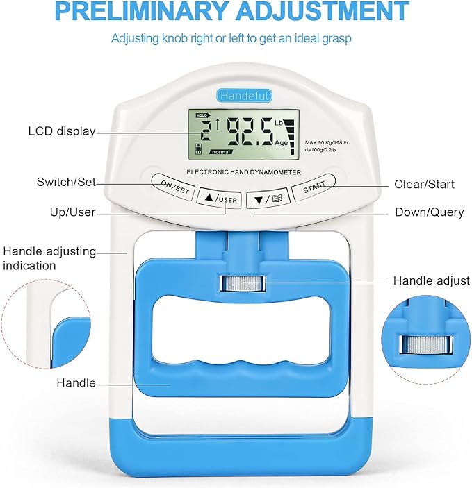 - [To know how stronger you are] - This is a perfect Digital Hand Dynamometer for physical therapists, occupational therapists, athletic trainers, chiropractors, and general practitioners. Grip Testing is necessary for sports such as rock climbing, wrestling and gymnastics, and it is also an important indicator of overall health. This Grip Strength Tester can be widely used in sports training, sports, family and clinical use.