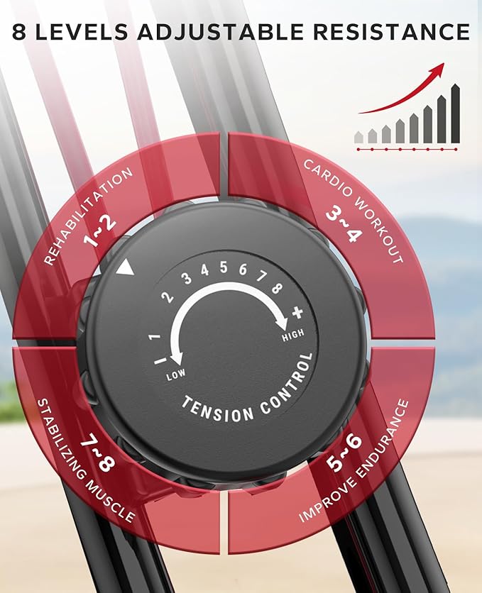 - 【8-Level Adjustable Magnetic Resistance】The Foldable stationary bike provides you with more adjustable weight options, we use silent and smooth magnetic flywheels to make sure no abnormal noise when exercising at home. 8-level resistance adjustment can meet your diverse needs. The Arm Resistance Bands can help you exercise your upper and lower limbs at the same time.