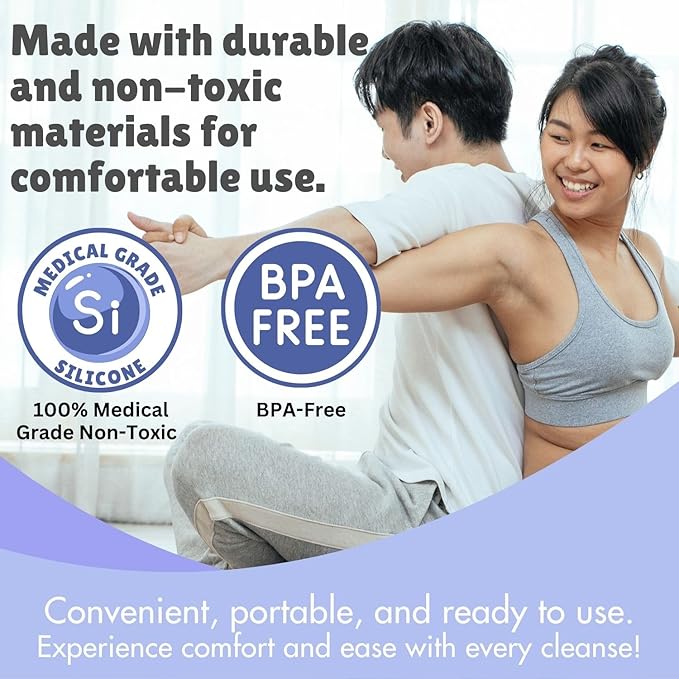 - SAFE AND GENTLE CLEANSING: Find peace of mind with our colonic cleanse kit equipped with a 2-liter premium happy bum bag, made from 100% medical-grade non-toxic silicone and BPA-free. No harsh chemicals —just gentle, soothing relief. With a 2-meter (6.5ft) connection hose and 3 Replacement Tips, including 2 silicone soft entry enema tips and 1 white colonic nozzle for a deeper clean.