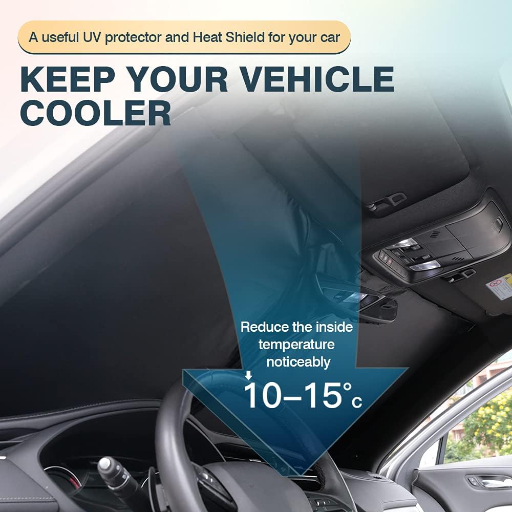 - Highly Reflective Protection -- The Mustang Mach-e sun shade will provide maximum protection for your car interior by blocking 99% of UV rays and sunlight. Not only protect the dashboard from fading and cracking, but also protect people skin by blocking the harmful UVA. Offering you a cool environment by lower the temperature by 50-59°F.