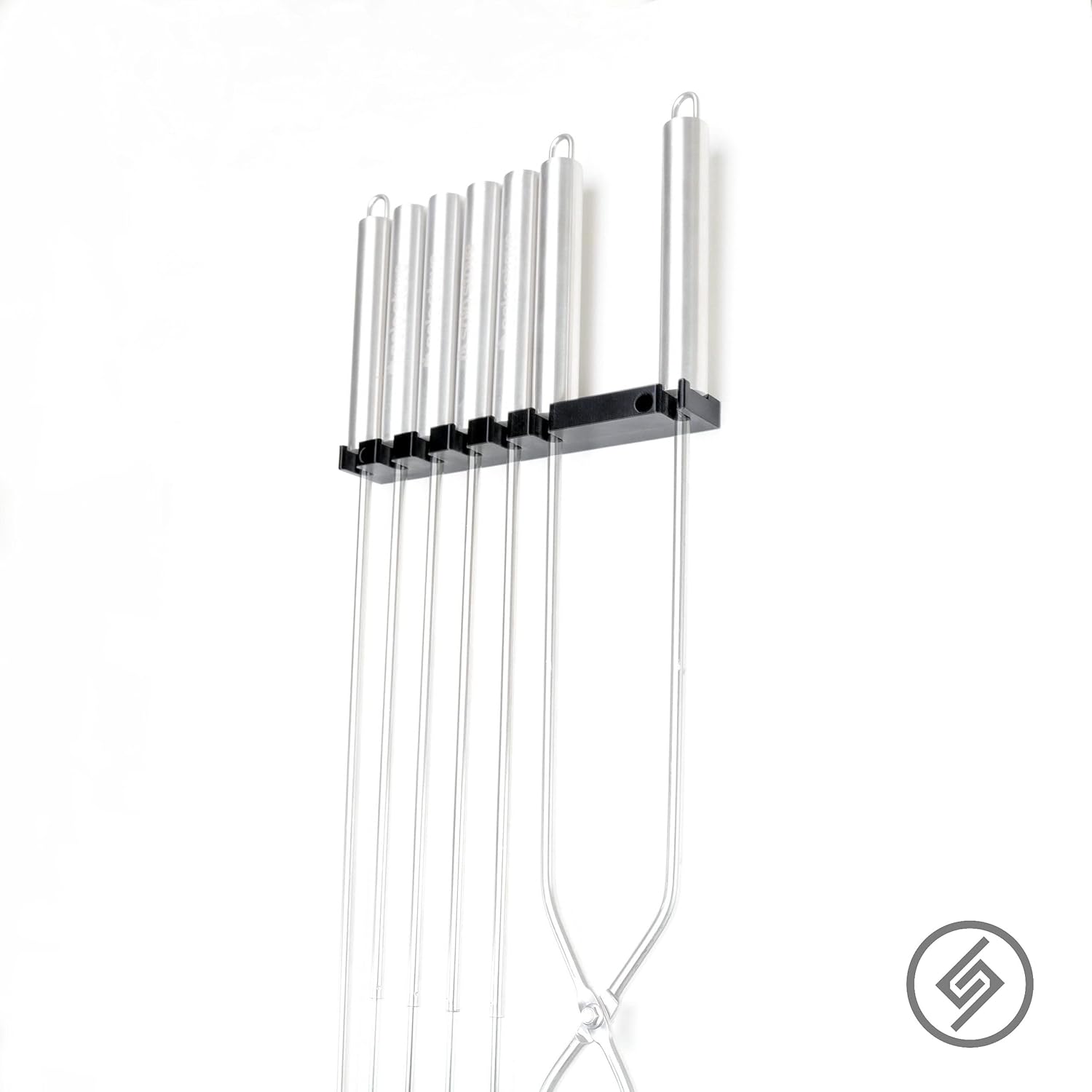 - PERFECT FIRE PIT TOOL STORAGE – Compatible with SOLO Stove tools. Includes slots for [1] poker, [4] forks, [1] set of tongs, and a separate mount for [2] fire screen hooks!. Secure, hidden design for home, deck, porch, fire pit, BBQ or any other convenient location. Proudly designed and built in Pittsburgh, PA!