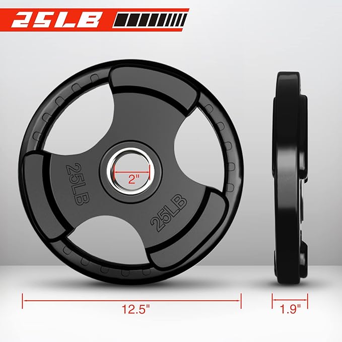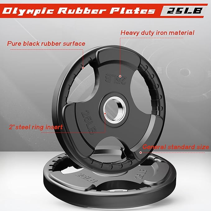 - SIZE- RitFit rubber plate can apply to all the 2 inch Olympic bars. We have 2.5lb, 5lb, 10lb, 25lb, 35lb, 45lb and different combinations about the choices and you can add different size weight plates to change the weight you can bear.