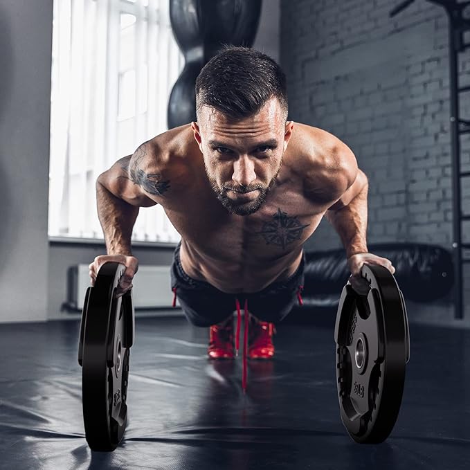 - HIGH-QUALITY AND GOOD USE EXPERIENCE- The quality of our rubber plate is durable and sturdy. It is safer and more practical to drop and lower after a lift exercise. The comfortable grip also give you a good use experience.