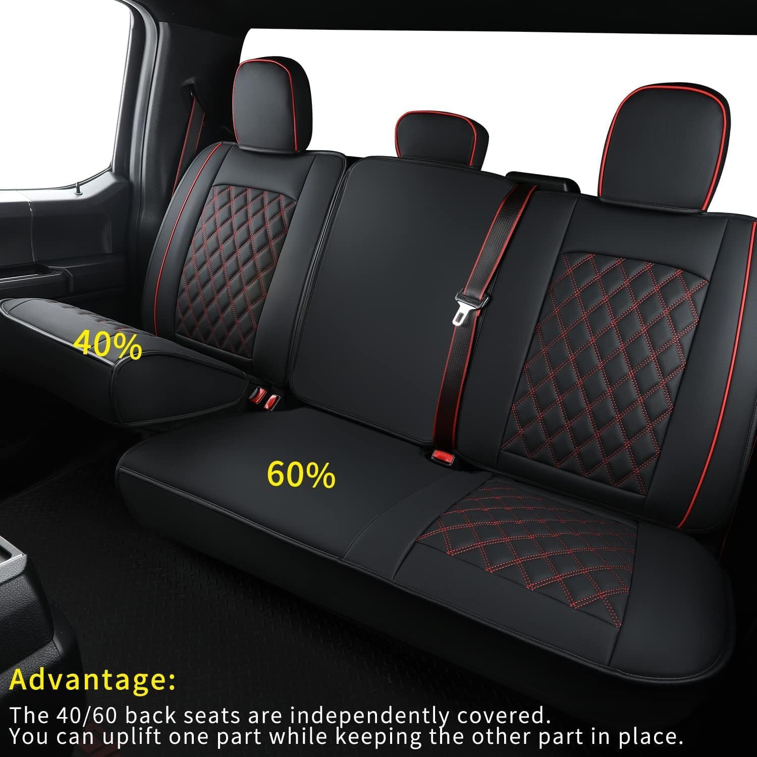 LUCKYMAN CLUB F150 Faux Leather Seat Covers Fit for 2015-2025 F150 and 2017-2025 F250 F350 F450 Pickup Trucks(Full Set, Black&Red)